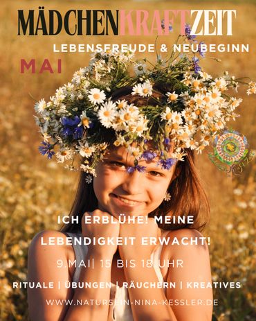 In dieser schwellenden, leuchtenden Zeit des Jahres tauchen wir gemeinsam ein in die uralte Magie des Wachsens, Blühens und Werdens. Wir weben unsere Herzenswünsche in einen Wünschebaum und vertrauen sie den unsichtbaren Kräften an, die uns begleiten. Mit duftenden Blüten in unseren Händen binden wir Kränze, die uns schmücken und erinnern – an unsere Schönheit, unsere Sanftheit und unsere wilde, ungezähmte Kraft.